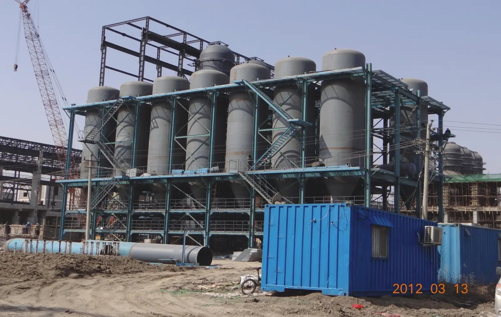 鋼鐵廠450m3高爐爐頂脈沖布袋除塵器選型案例,高爐爐頂脈沖布袋除塵器選用兩萬風(fēng)量的管噴式脈沖布袋除塵器效果比較好,按照當(dāng)?shù)鼗蛘呖蛻舡h(huán)保排放標(biāo)準(zhǔn)要求設(shè)計足夠的過濾面積達到理想的效果預(yù)算設(shè)計,高爐煤氣干法脈沖袋式除塵器是在廢氣經(jīng)支管進入到袋式除塵器的下部箱體機械別離后,煤氣向上透過布袋將局部粉塵附著在布袋的表面,凈化過的氣流經(jīng)過布袋會聚到上箱體,進入到熱風(fēng)爐中運用。而除塵了一段時間后,布袋外表的粉塵是越積越多,設(shè)備的阻力也上升了,到達一定的數(shù)值時,電氣控制系統(tǒng)就發(fā)出了清灰信號,出口支管啟動蝶閥和上球閥自動關(guān)閉,脈沖閥開啟,分氣缸氮氣經(jīng)過噴吹管從袋口噴入,布袋急速收縮,在表面面的粉塵被抖落下來,落入到錐形灰斗內(nèi)。